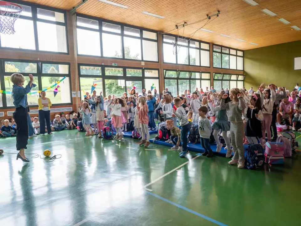 Erstklässler starten mit Luftsprung in ihre Schulzeit